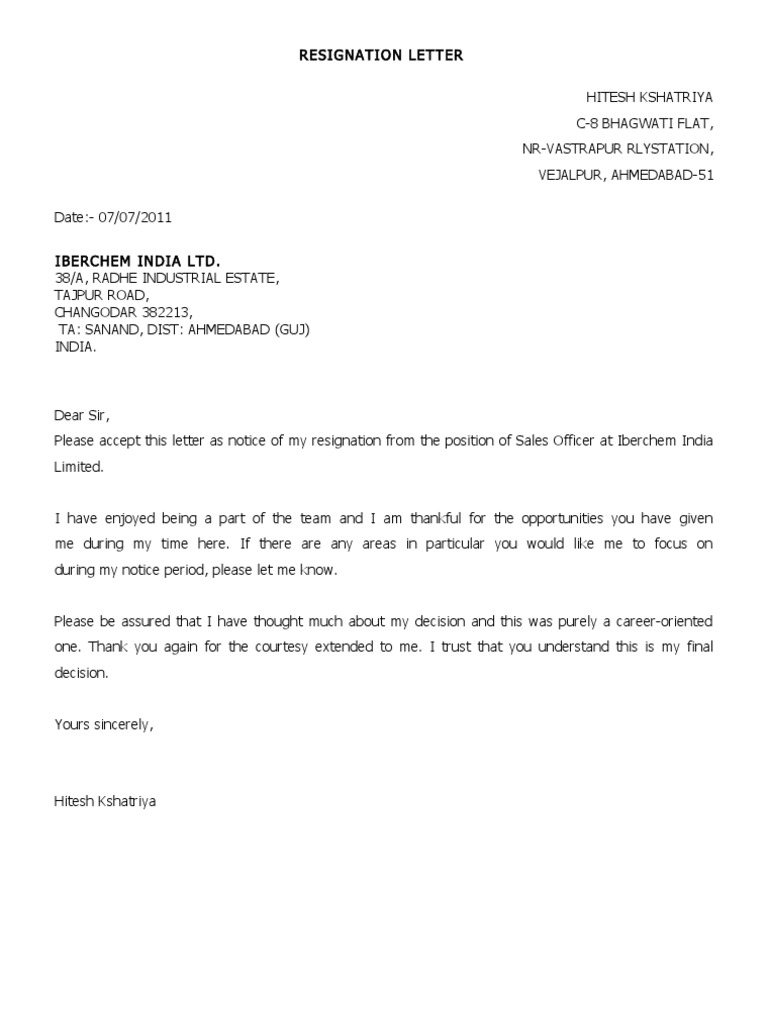 Resignation Letter Sample Letter Of Resignation Examples Format