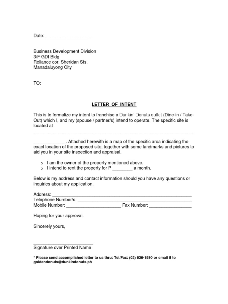 Sample Letter Of Intent Franchise Purchase Template Download From Business Operations Franchises