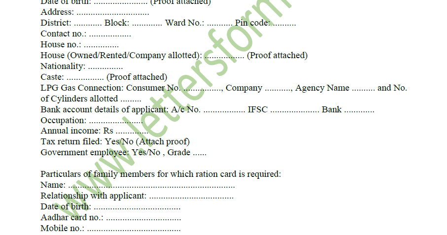Application Letter To Rationing Officer For Issue Of New Ration Card