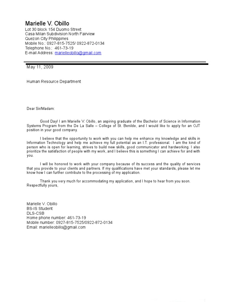 Application Letter Format For Ojt Hrm Students Application Letter Of Hrm Student