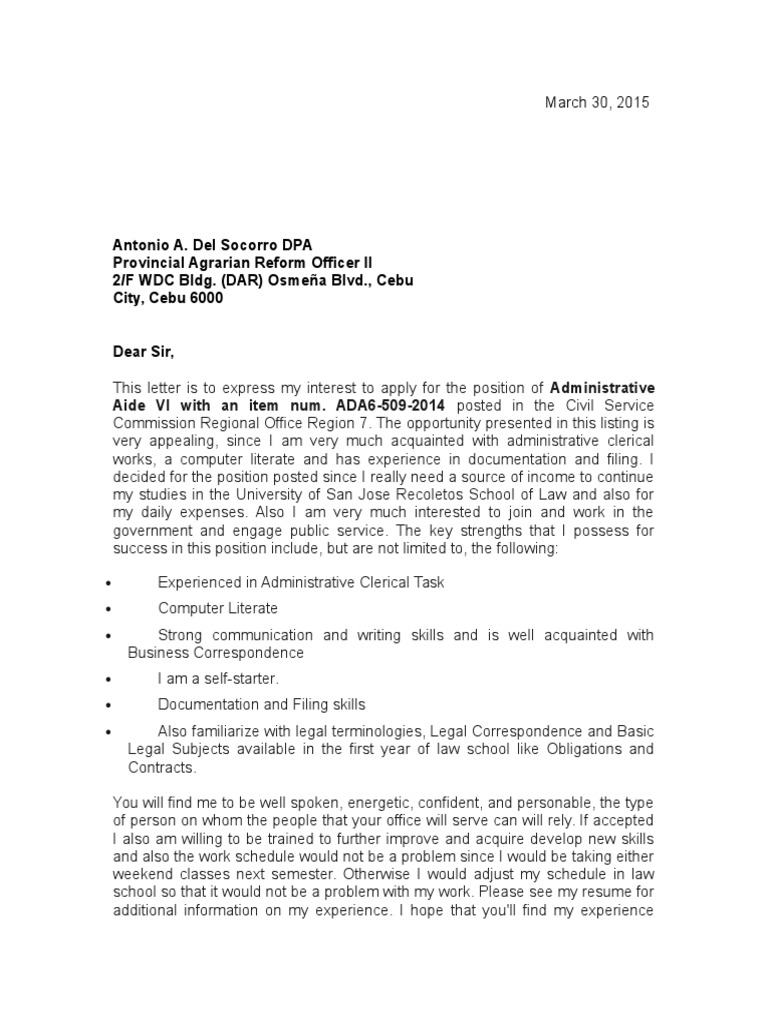 Application Letter Goverment Admin Aide Dar Province Employment Social Institutions