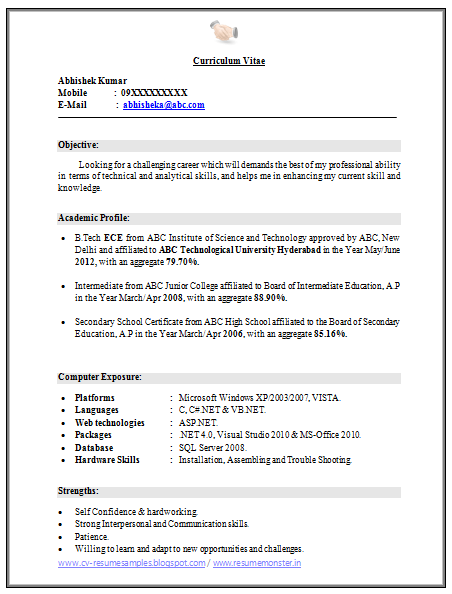 Sample Resume Format For Mba Fresher