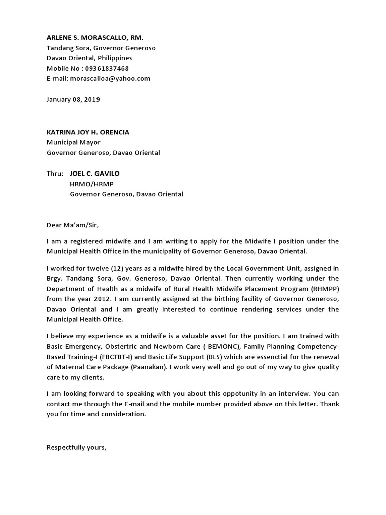 What To Put In Cover Letter Examples For Nurse Midwife