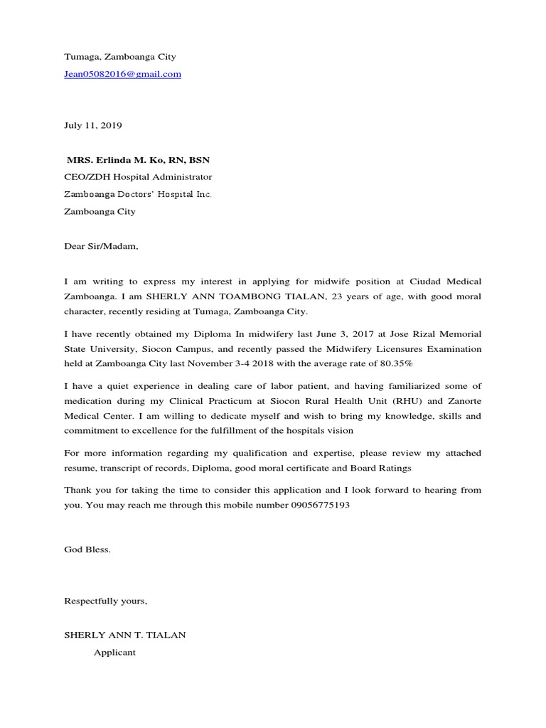 Midwife Cover Letter