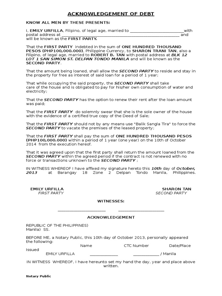 368 sample acknowledgement letter of debt. And here they are. Further things to consider when writing acknowledgment letters to creditors. Acknowledgement of debt sample september 8 2013 admin acknowledgement acknowledgement letter sample i the undersigned john holmes identity number 00124587 with permanent residence on east boulevard nr. Debt acknowledgment and repayment plan form this is an example of a type of debt acknowledgment form which is combined with another document specifically a repayment plan form.