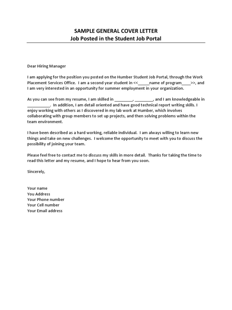 You can also check out our website if you need help or need more references to writing your own cover letteryou can also check our website for different types of hard copy cover letters. The language used should be simple and clear. Use our professional and persuasive free cover letter to help you write a powerful and winning cover letter for summer job or student opportunities. Dear mrmrsms name of the hiring manager subject.