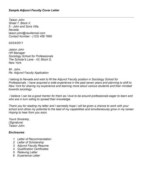 368 sample cover letter for adjunct faculty position. I am a full time marketing consultant with 15 years of professional experience and two semesters of teaching experience who would love to share my knowledge of the. It must be good. Check with faculty in your department. End the cover letter with a professional sign off and your full name.