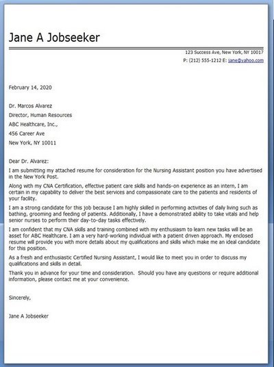 Certified Nursing Assistant Coverletter Sample