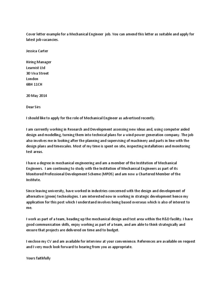 Best Cover Letter For Mechanical Engineering Job Plancha