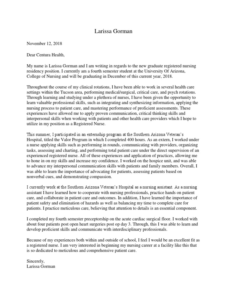 To be considered for top nursing jobs it helps to have a well crafted cover letter. Waiting can delay your entry into a residency by up to six months. Help employees understand your nature and soul. Its not unusual to hear new graduates looking for expert assistance when it comes to their new grad rn cover letter because they want to increase their chances of getting hired.