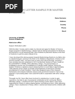 Sample motivation letter template for masters pdf word doc a motivation letter for masters is your key to success if you wish to work or study in esteemed organizations or institutions. The main objective of a motivation letter is to persuade the recruiter that youre the most suitable candidate for the position youre applying for. While completing cvs and forms. But how to write the best motivation letter.