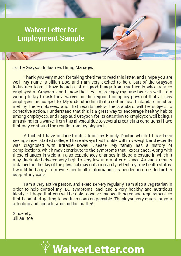 368 sample thank you letter for waiving a fee. Dear sir i received your letter dated 23 june 2015 on 28 th of june 2015. A letter requesting waiver of personal rights should mention the dangers involved in signing the letter. The fact that i went in to the red at all is a testament to my financial hardship. Request letter for waive bank fee a request letter for waive bank fees is written by the customer of a bank to bank authorities requesting them to waive the bank fees for various reasons as may be illustrated.