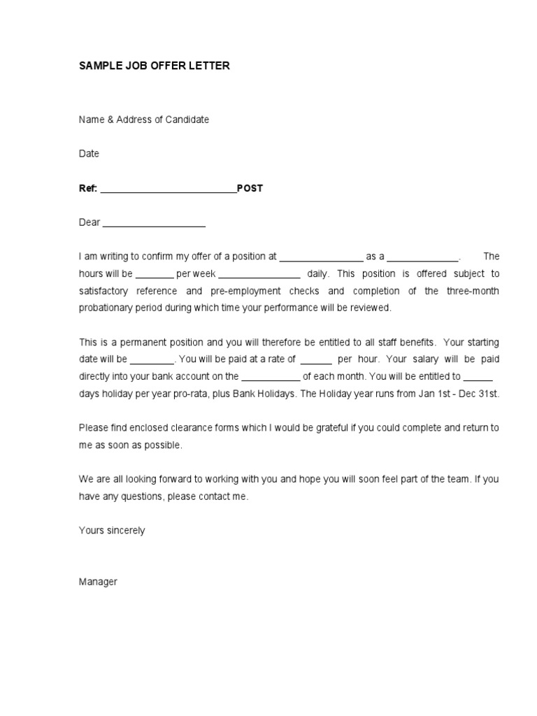 An employment job offer letter contains important details such as start date job title work hours compensation etc. The purpose of your email or letter is to show gratitude. Thank you for hiring me for the retail sales position. Receiving a job offer letter is a moment of joy happiness.