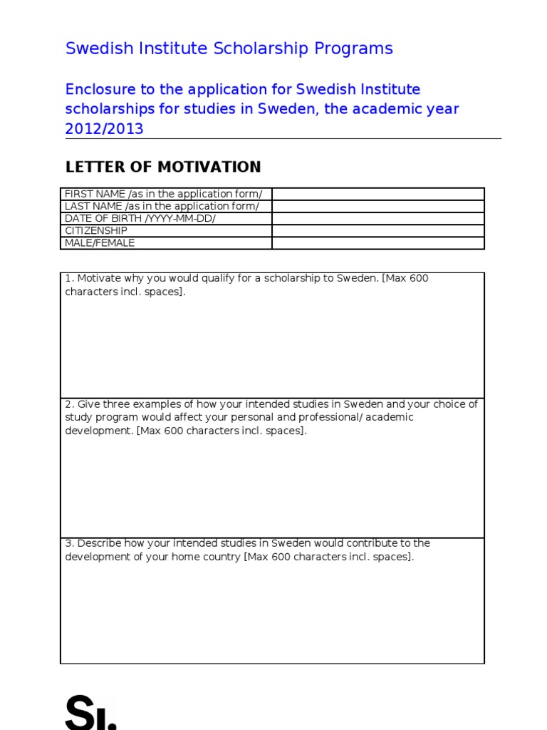 Motivation Letter For Si Study Scholarship 2012 2013